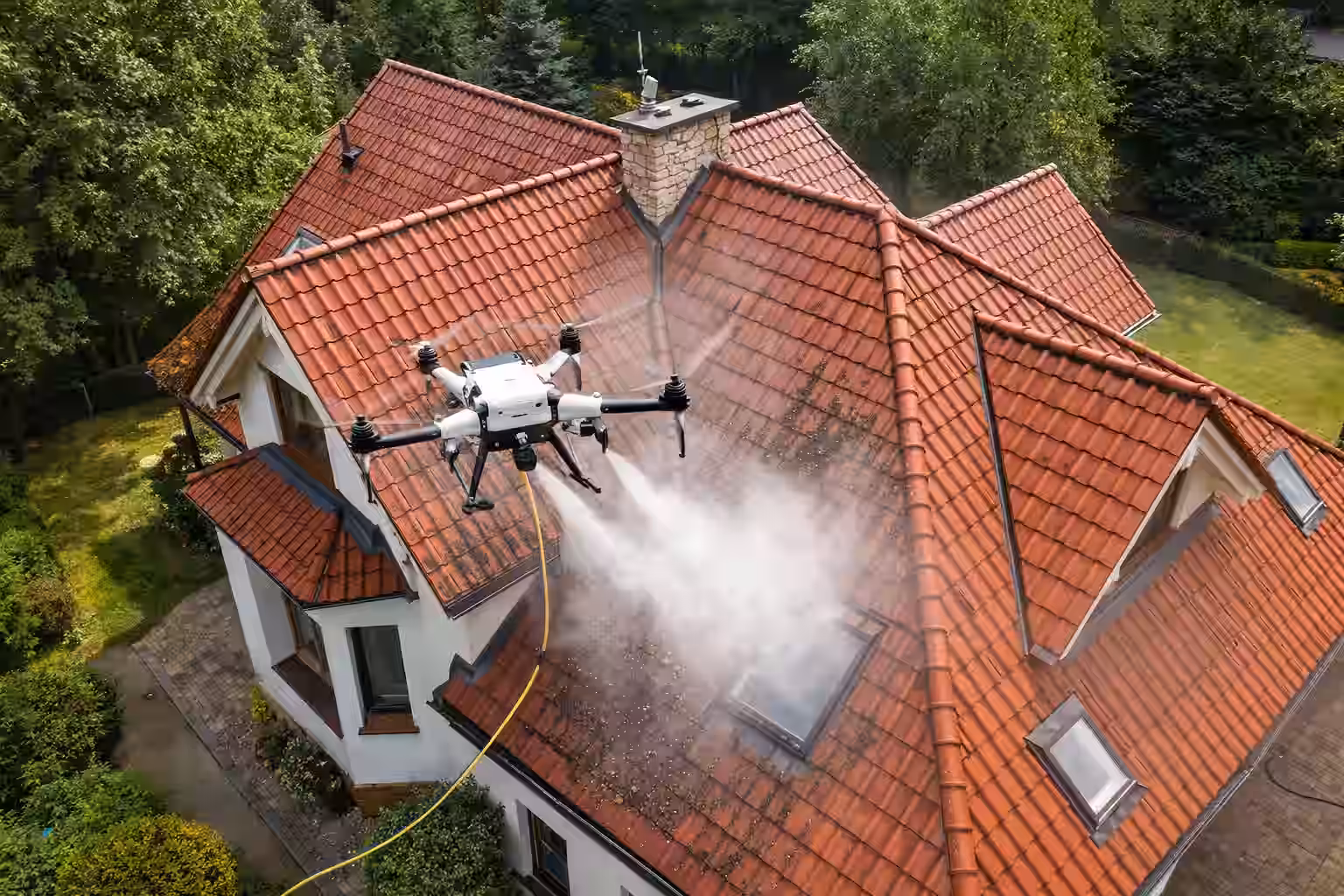 Mycie dachówki i pokryć z powietrza bez prac wysokościowych.